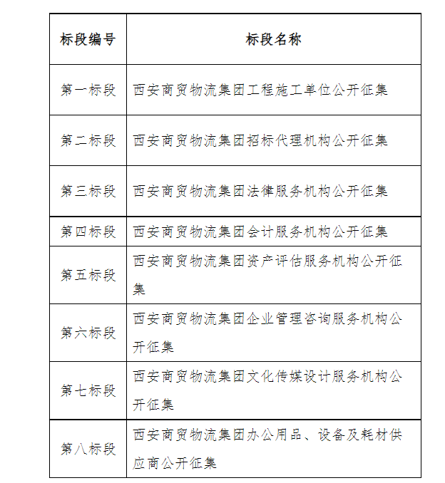 第二標(biāo)段:西安商貿(mào)物流集團招標(biāo)代理機構(gòu)公開征集